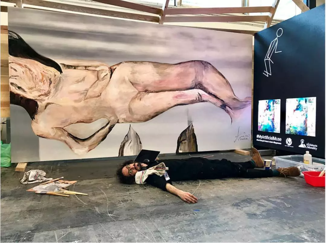 因为由算法产生,观众可以挑战 Klingemann 的图画是否算是真的作品。而他的朋友 Albert Barqué-Duran 则基于 Klingemann 生成的图像重新创作绘画,避免了这个问题,顺便玩笑似地挑战了艺术品中艺术性的定义。